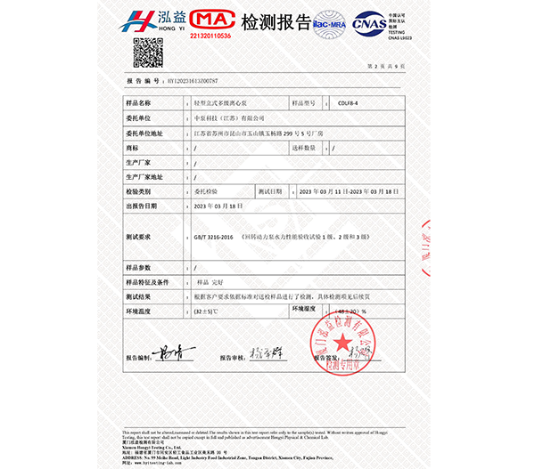 檢測報告 輕型立式多級離心泵