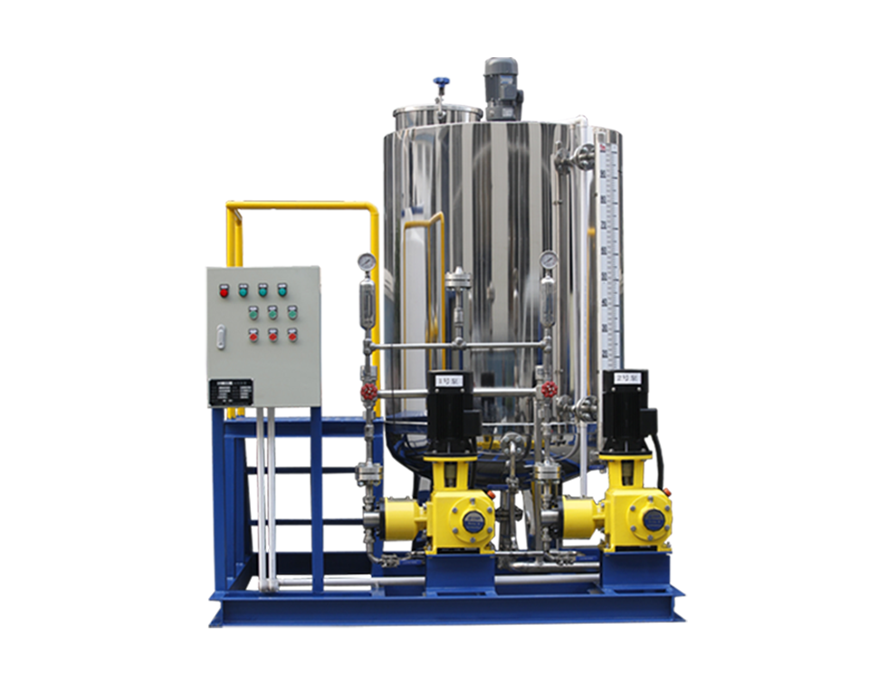 技術參數成套加藥裝置和專項成套加藥裝置有多種規格型號,產品包含一罐一泵,一罐兩泵,兩罐兩泵,兩罐三泵,三罐三泵及多罐多泵。系統所使用的配置是根據計量泵的數量和出口來定的,用戶可以根據工藝需要進行選擇,也可依據用戶的特殊需要來設計和生產的非定型產品
